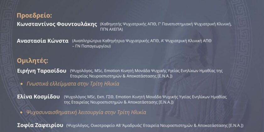 Live Webinar με θέμα: «Συζητώντας για την Ψυχική Υγεία στην Τρίτη Ηλικία: Προκλήσεις σύγχρονης ζωής και στρατηγικές παρέμβασης»