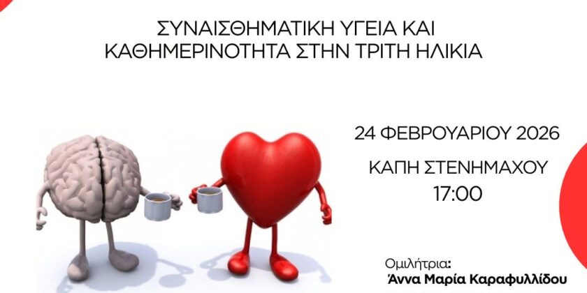 Ομιλία με θέμα «Συναισθηματική Υγεία και Καθημερινότητα στην Τρίτη Ηλικία»