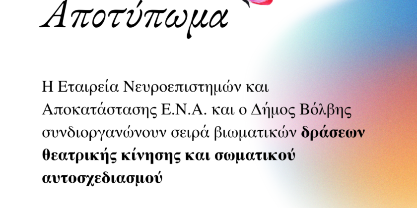 Η Εταιρεία Νευροεπιστημών και Αποκατάστασης (E.N.A.) σε συνεργασία με τον Δήμο Βόλβης, στο πλαίσιο του Προγράμματος Αρωγής στην Κοινότητα «ΟΤΑν έχω εσΕΝΑ», υλοποιούν μια σειρά βιωματικών δράσεων για μαθητές Δημοτικών Σχολείων, με την υποστήριξη του Art Wave – Κέντρο Ημέρας…